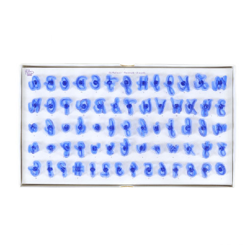 Kompletter Satz von 66 Stück einschließlich 26 Großbuchstaben, 26 Kleinbuchstaben, den Ziffern 0 - 9 und den Symbolen &, !, ? und #.