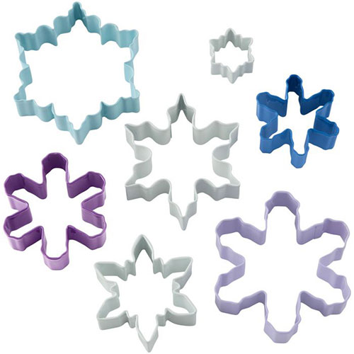 Das Wilton Keksausstecher Set mit sieben verschiedenen Schneeflocken-Ausstechformen ist ideal für winterliche wunderschön verzierte Kekse! Die Ausstecher aus Metall haben unterschiedliche Designs, Größen und Farben