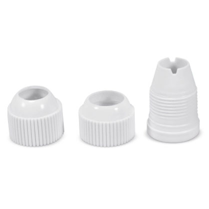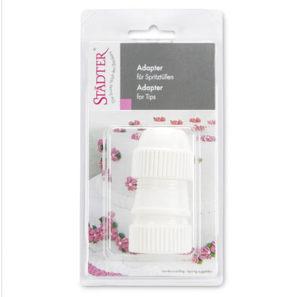 Durch unsere praktischen Adapter können Sie bei gefülltem Spritzbeutel die Tülle wechseln und sofort mit der anderen Tülle weiterdekorieren.
