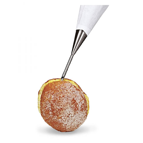 Egal ob man sie jetzt Krapfen, Berliner oder Pfannkuchen nennt – das beliebte Fettgebäck muss auf jeden Fall mit Pflaumenmus, Marmelade, Konfitüre, Schokocreme oder zu Fasching schon auch einmal mit Senf gefüllt werden. Ebenso natürlich perfekt, um Cupcakes, Donuts und anderes Gebäck zu befüllen.